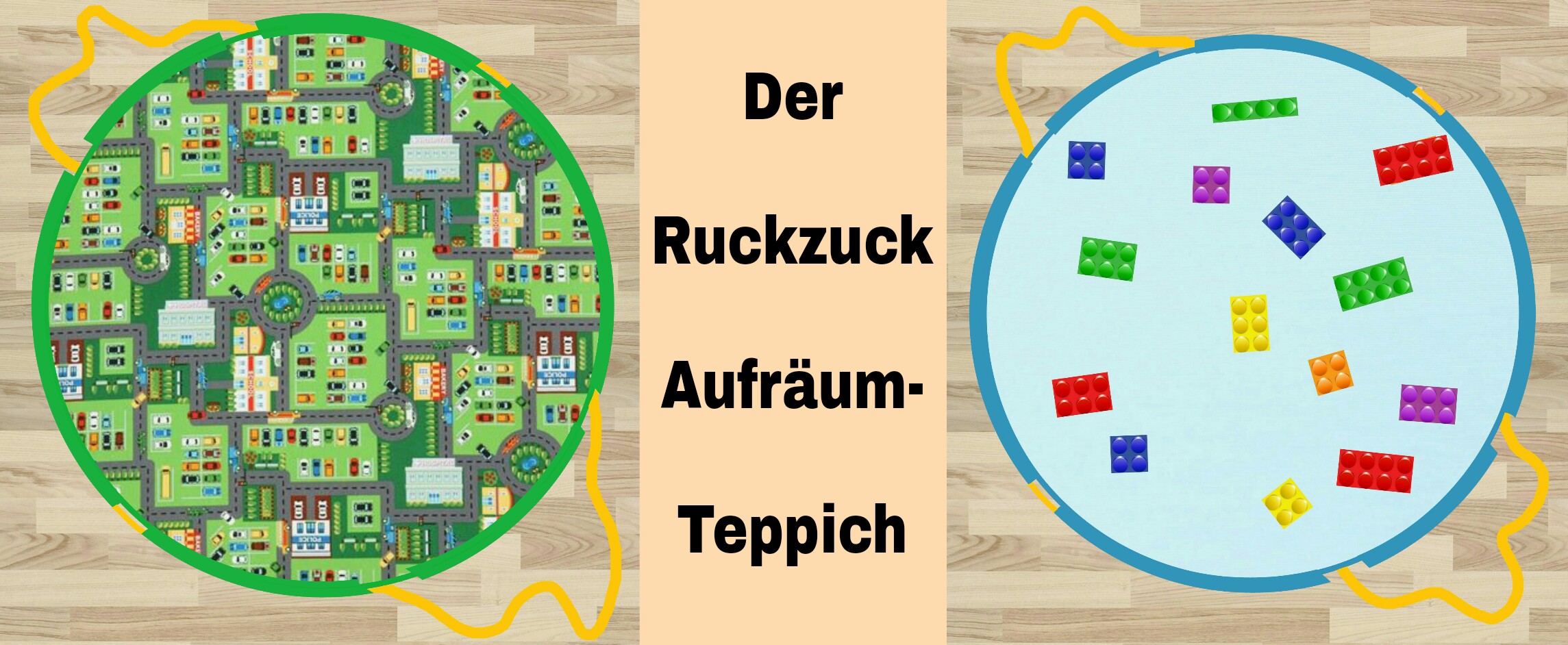 Und jetzt kommen wir zu einer total genialen Erfindung! Der Ruckzuck Aufräumteppich. Man kann ihn als Spielzeugsack kaufen oder eben selbst nähen. Es ist auch nicht so schwer. Versprochen! Ich bin ja eigentlich keine Nähmaus und habe es trotzdem geschafft. Dann kannst du das bestimmt auch. Ich habe mich bei den Stoffen für einen Straßenaufdruck und einen einfarbigen Stoff entschieden, da man die eine Seite für jedes Spielzeug benutzen kann und die andere Seite für coole Autos oder kleine Puppen. Ihr könnt aber selbst entscheiden, welche Stoffe ihr auswählt oder ob ihr einen bereits fertigen Spielzeugsack kauft. Ich rate euch jedoch mindestens eine einfarbige Seite zu wählen.
