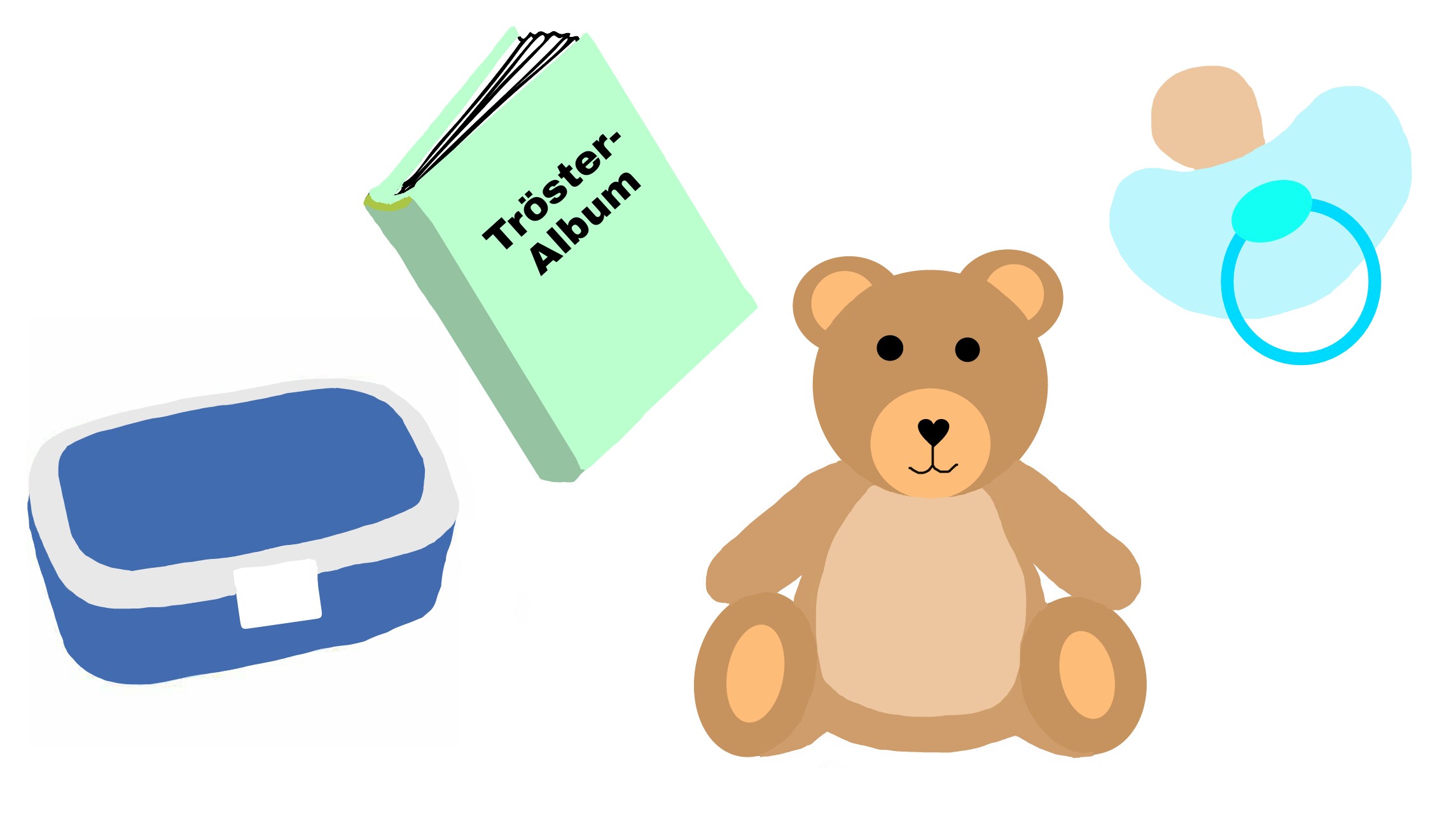 Schnuller und Lieblingskuscheltier bieten Sicherheit in Momenten, in denen das Kind seine Eltern vermisst. Sie sind vertraut und es besteht eine Bindung, die beruhigt. Der zweite Schnuller dient als Ersatz, falls einer verloren geht.