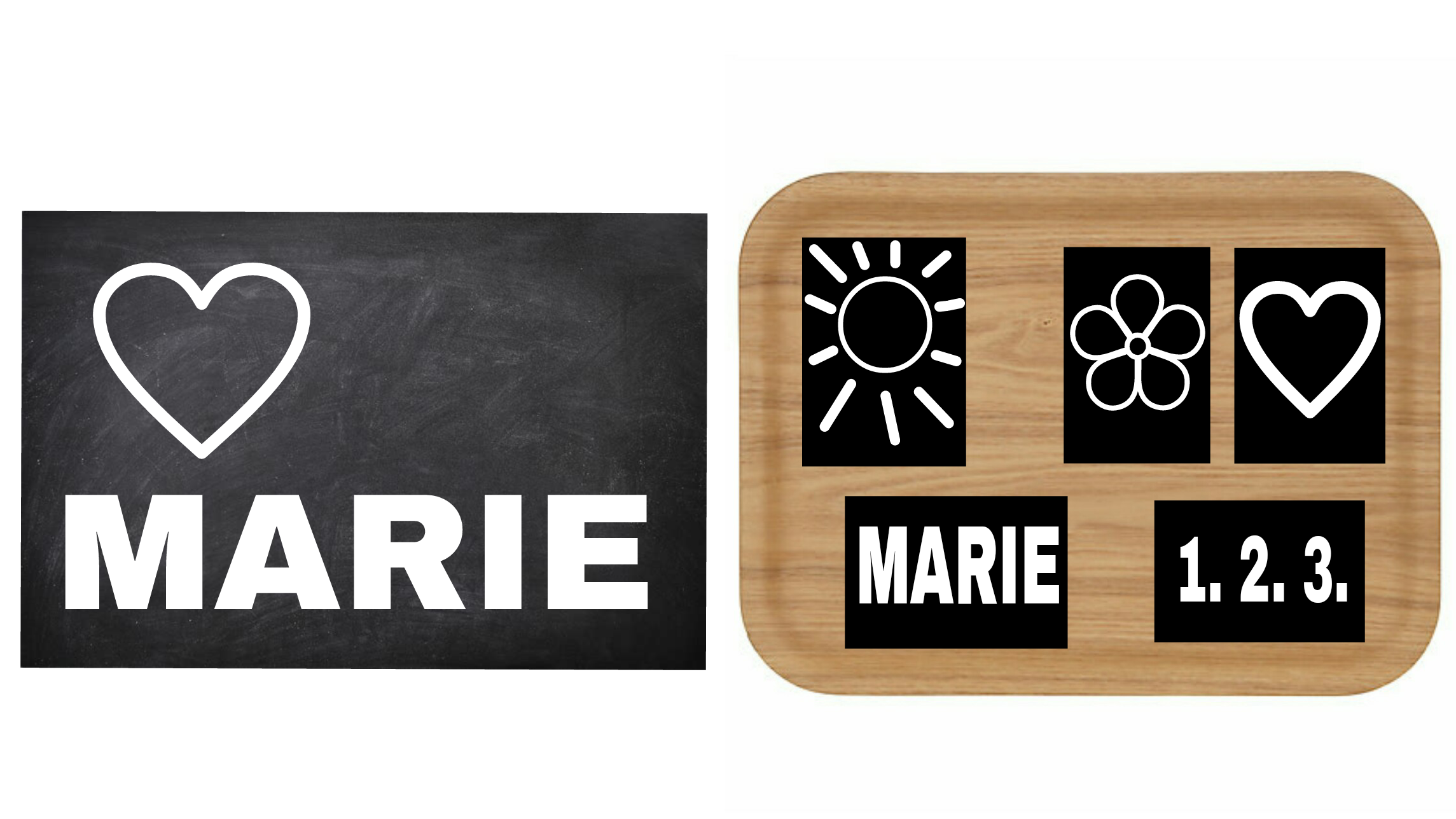 Ja, die Lerntabletts kann man im Familienalltag anwenden und das geht sogar sehr einfach. Wer kennt das?: „Mama/Papa, wann ist das Essen fertig? Ich hab Hunger!“ Diese kleinen Quengeleien kann man überbrücken, indem man die Zeit vor dem Mittag- oder Abendessen mit den Lerntabletts ausfüllt. Stellt das Tablett, das ihr jeder Zeit verändern könnt und regelmäßig an die Interessen eures Kindes anpasst, in ein Regal in Reichweite eures Kindes und lasst es am Essenstisch damit arbeiten. So fördert ihr euer Kind und habt eine entspanntere Zeit, während das Essen im Backofen ist. Natürlich könnt ihr es auch an Regentagen nutzen. Wenn ihr ein Schulkind und ein kleineres Kind habt, werdet ihr bestimmt auch die Situation kennen, dass das Kind das Hausaufgaben macht traurig darüber ist, dass das jüngere Geschwisterchen keine machen muss. Natürlich kann es auch sein, dass das kleinere Geschwisterkind eifersüchtig ist, weil das Hausaufgaben machende Kind mehr Aufmerksamkeit bekommt. Wenn ihr das kennt, könnt ihr während der Hausaufgaben-Zeit des Erstgeborenen das andere Kind an den Lerntabletts arbeiten lassen. So haben beide Aufgaben zu erledigen. So und nun kommen wir zu ein paar Ideen, wie ihr die Lerntabletts gestalten könnt.