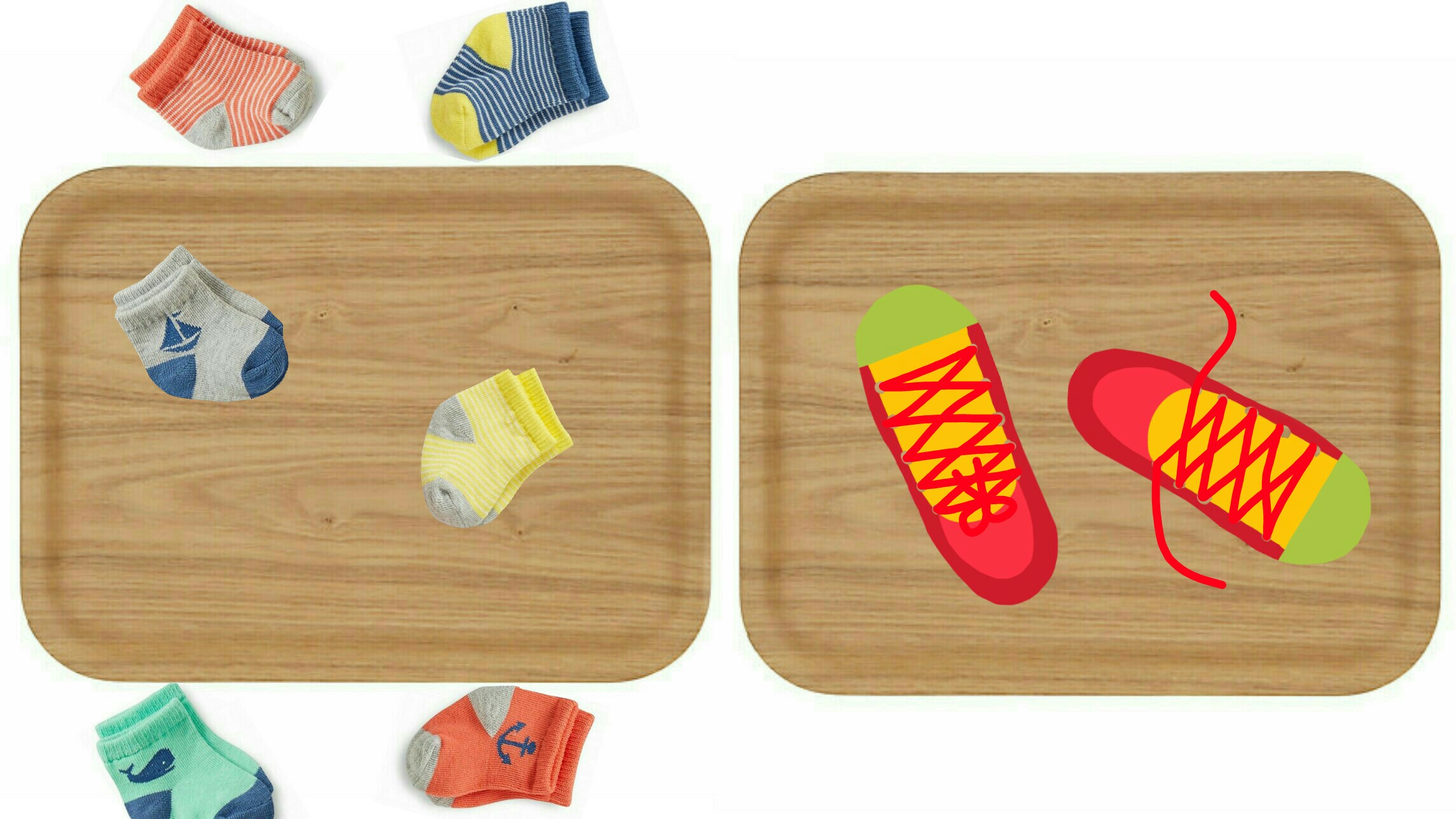 Ziele: Durch das Sortieren der Socken werden die mathematischen Fähigkeiten geschult. Denn in der Mathematik geht es nicht nur um Zahlen, sondern auch um sortieren, vergleichen und vielem mehr. Bei diesem Lerntablett geht es besonders um das Vergleichen und Sortieren, da das Kind die Socken genau anschauen muss und mit anderen vergleicht, um sie dann zusammen zu legen. Dabei sortiert es sie auch automatisch nach Farben und Formen und kategorisiert sie, um die richtigen Paare herauszufinden. Und gleichzeitig hilft euer Kind euch bei der Hausarbeit. Und mal ehrlich: wer legt von uns schon gerne Socken zusammen?